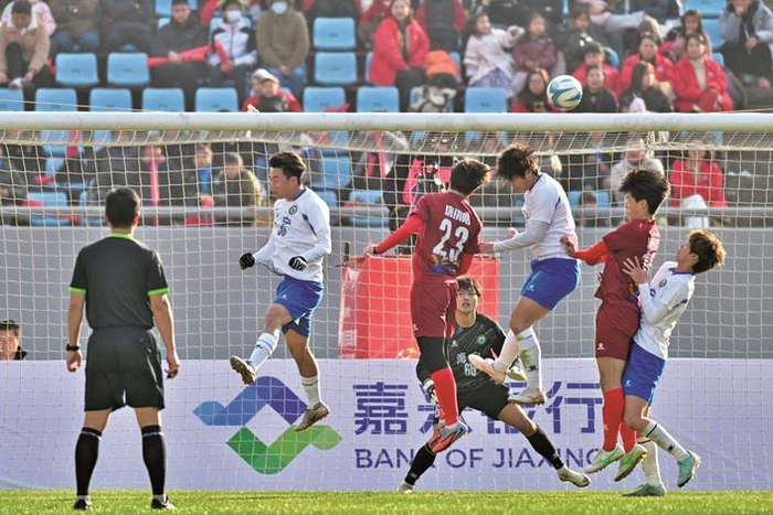 如果说邵群立代表坚守,20岁的王腾翔则代表奔涌的希望。1月11日,南湖对阵平湖。僵持至下半场,王腾翔站了出来,一粒点球,一次抢断后的单刀,干净利落,锁定胜局。这个典型的嘉兴本土青训球员,从小学在市队受训,到通过体育单招考入湖南师范大学,足球贯穿了他一半人生。
