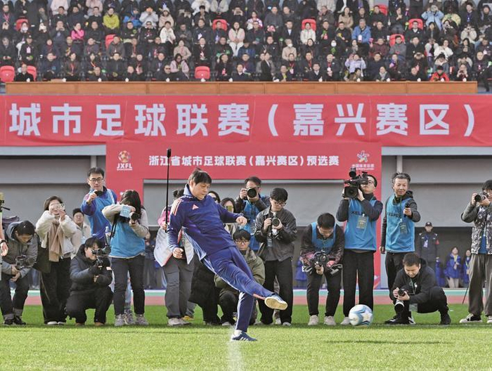 “嘉兴可以,嘉兴足球更可以!”范志毅以洪亮嗓音喊出这句话,积蓄已久的欢呼如潮涌起。这位中国足球的标志性人物,为“嘉冠”揭幕战开球。